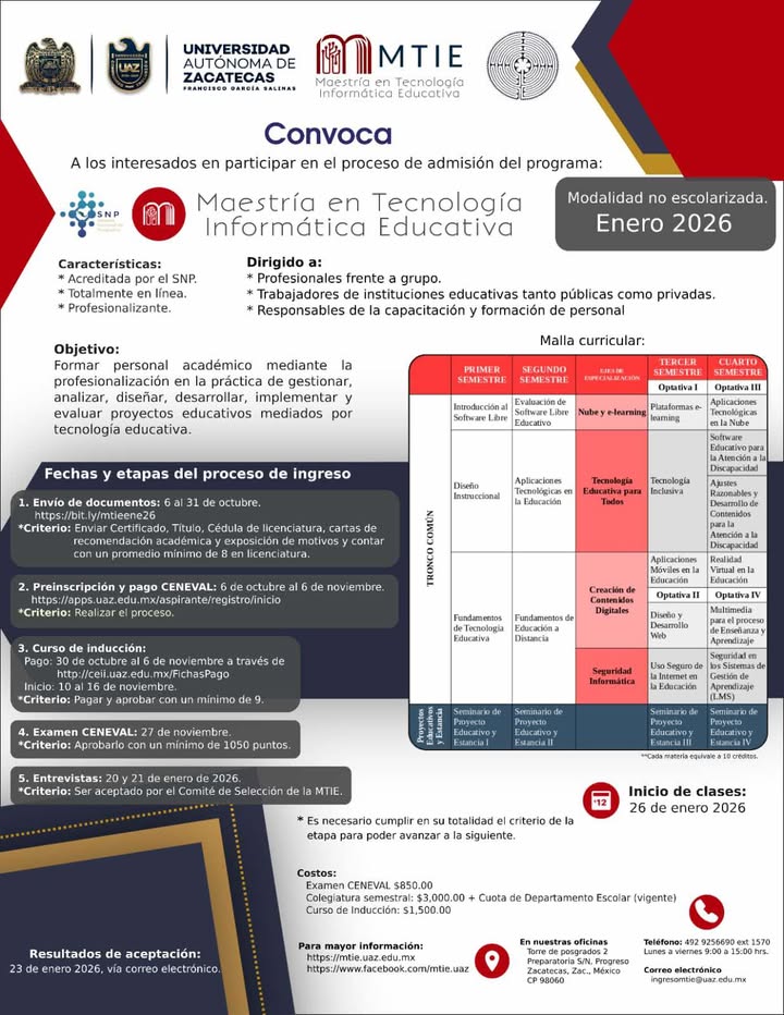 𝐌𝐚𝐞𝐬𝐭𝐫í𝐚 𝐞𝐧 𝐓𝐞𝐜𝐧𝐨𝐥𝐨𝐠í𝐚 𝐈𝐧𝐟𝐨𝐫𝐦á𝐭𝐢𝐜𝐚 𝐄𝐝𝐮𝐜𝐚𝐭𝐢𝐯𝐚Modalidad no escolarizada Enero 2026